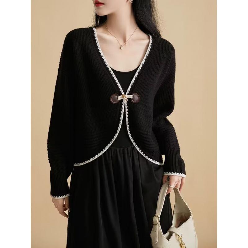 Высокая ценность и тяжелое мастерство для создания кардигана женского вязаного из мягкой восковой шерсти с V-образным вырезом и застежкой на роговые пуговицы, новые модели осень-зима one size fits all чёрный