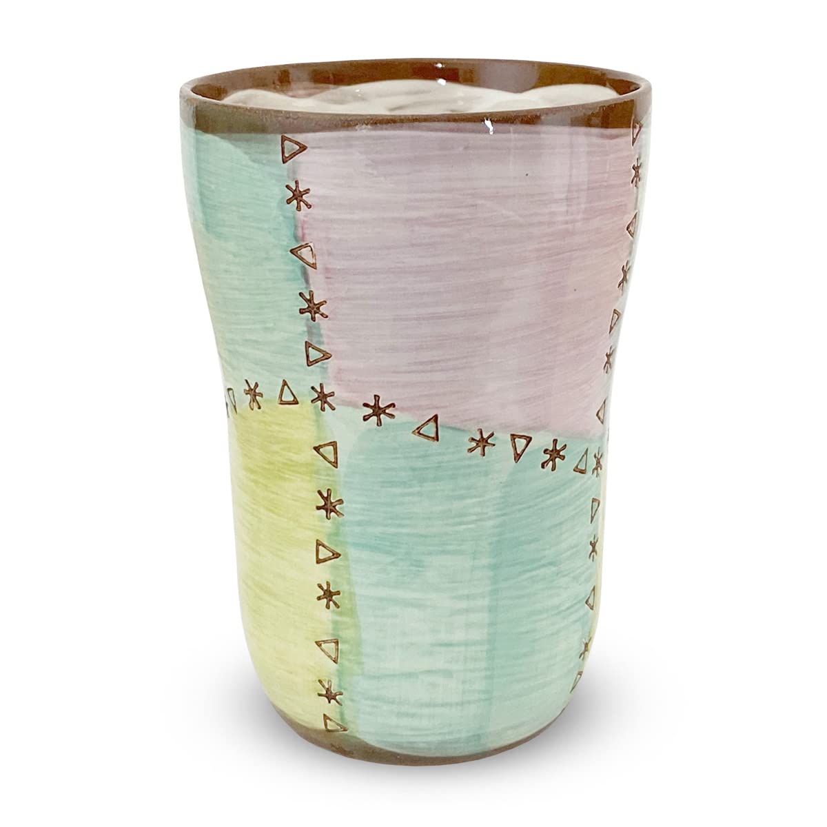 Высокая чашка, лоскутное шитье, синяя, Хасами-яки, Кобо Шо, Сделано в Японии, J-kitchens ~