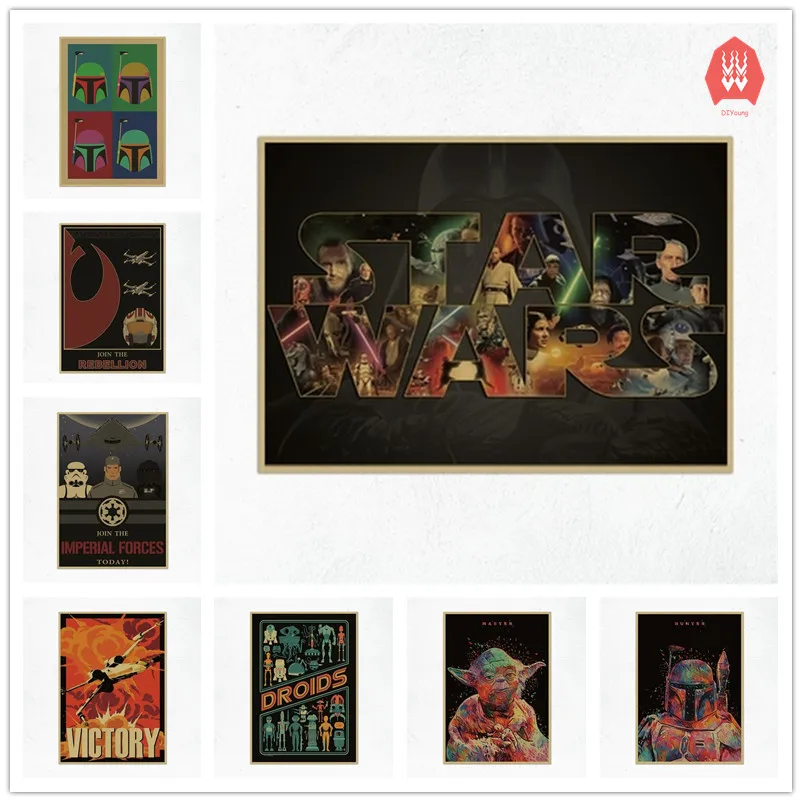 Vintage Movie Star Wars Portrait Boba Fett Hunter Yoda Droids Spaceship Poster Bar Home Decor Retro Kraft Paper Wall Sticker