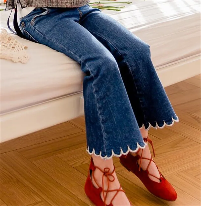 Children's jeans19 Spring and Autumn new girl pants Korean version of the pure color cowboy wave pants wholesalebaby girl jeans