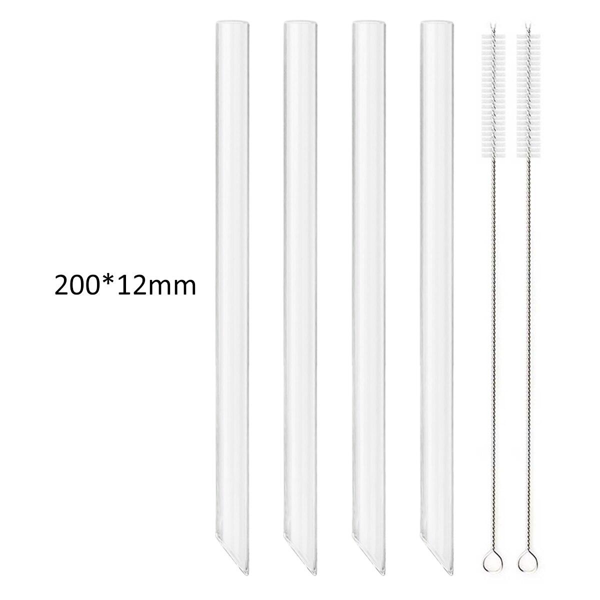 Высокоборосиликатная многоразовая соломинка для питья, экологически чистая стеклянная соломинка для пузырькового чая, смузи, аксессуары для бара, соломинка с сумкой для кисточек 12mm 4Pcs sharp