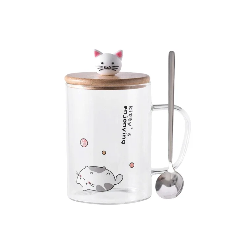 Высокобортная силиконовая стеклянная чашка с логотипом под заказ, вертикальная чашка с крышкой, ложка, домашняя прозрачная чашка для воды, ...