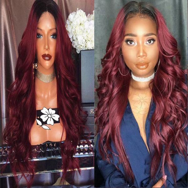 Высокое Качество Два Тона Цвет Черный Корень Ombre Вино Красный Тела Волна Парик Gluel