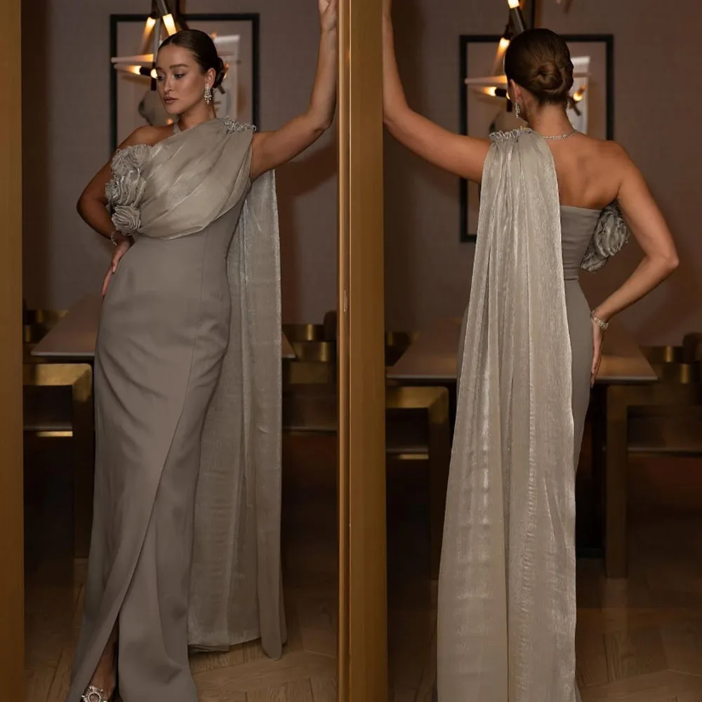 Высокое качество длиной до пола, без рукавов, на одно плечо, с высокой вилкой и цветами, морщинами, коричневые, с открытой спиной, женские вечерние платья для выпускного вечера