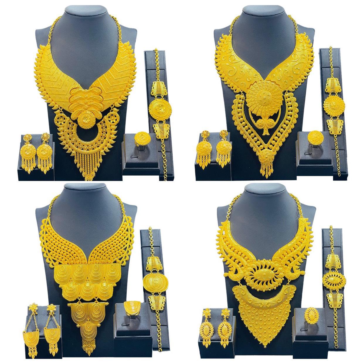 Высокое качество позолоченный комплект ювелирных изделий в Дубае, женские ювелирные изделия на Ближнем Востоке, ожерелье, браслет, серьги, кольцо, оптовая продажа