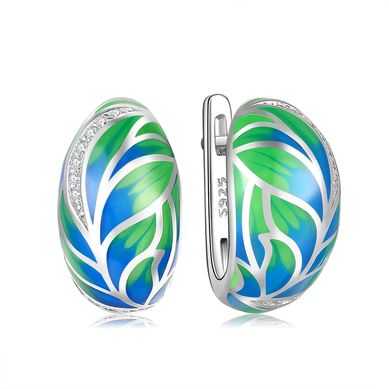 Высокое качество эмаль серьги для женщин 100% реальные 925 кольцо из стерлингового серебра с голубым-зеленые серьги в виде пера серьги для женщ...