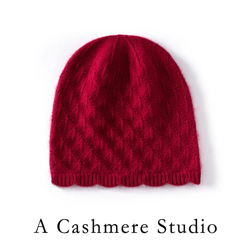 Высокое качество, 100% кашемировая вязаная шапка, женская полая конструкция, зимняя теплая модная уличная однотонная шапка-джокер, удобная мягкая