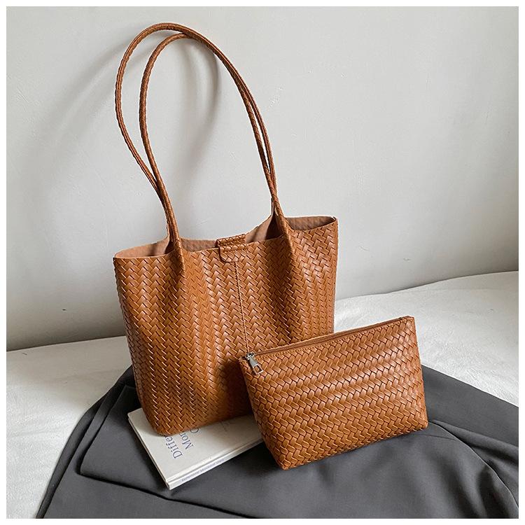 Высокое чувство в ветреной плетеной сумке женская новая мода повседневная универсальная сумка через плечо большая вместимость сумка-тоут через плечо женская коричневый