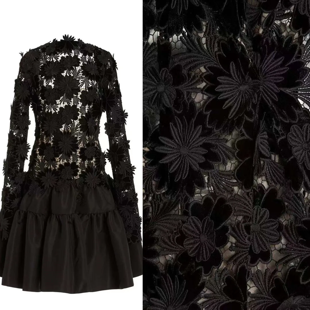 Высококачественная Водорастворимая Ткань с 3D цветами/черная вышитая африканская Водорастворимая кружевная ткань для вечерних платьев, мо...