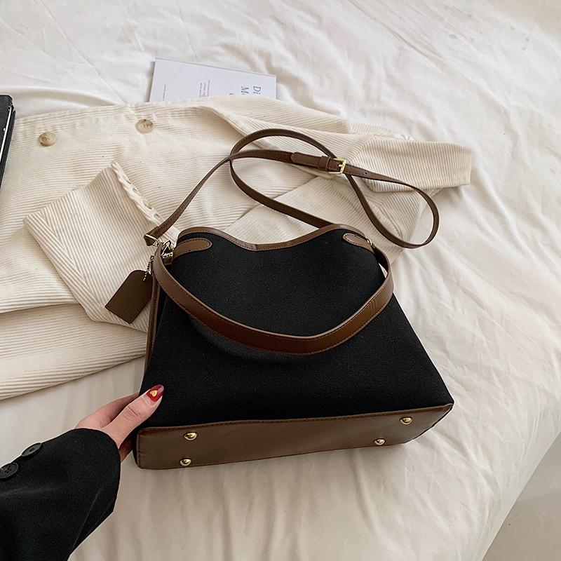 Высококачественная женская сумка через плечо, модная контрастная цветная пэчворк, большая вместимость, женская холщовая сумка-ведро, классическая ретро-сумка
