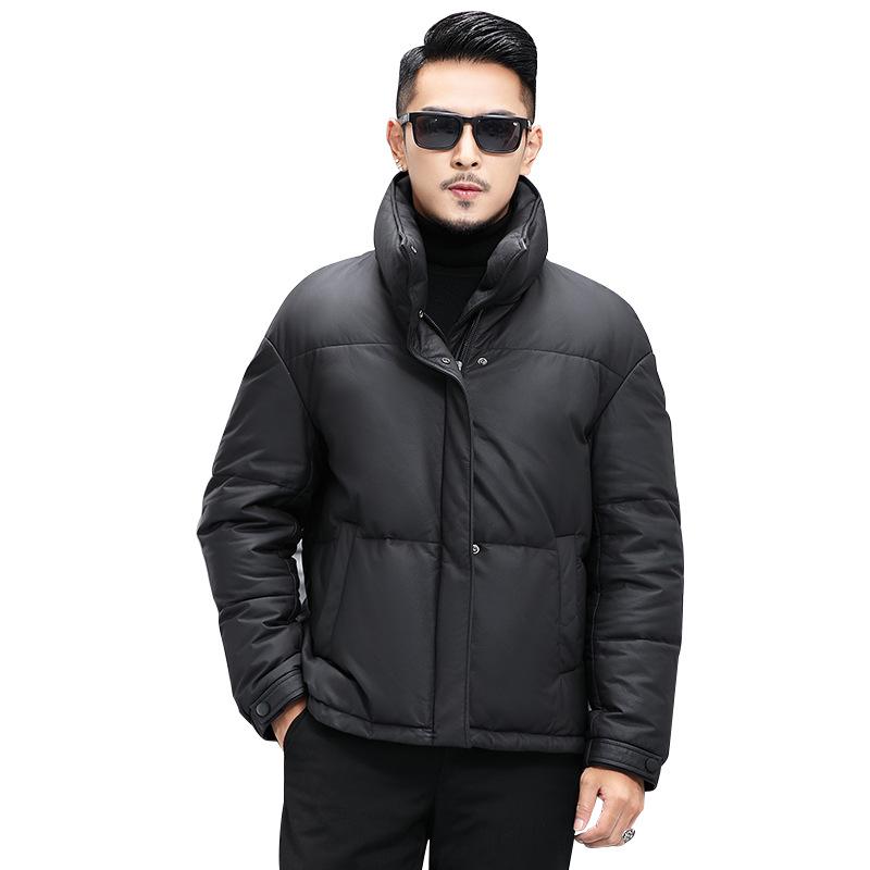 Высококачественная куртка-пуховик из коровьей кожи первого слоя, короткая широкая кожаная куртка, мужская осенне-зимняя утолщенная кожаная куртка XXXXL чёрный