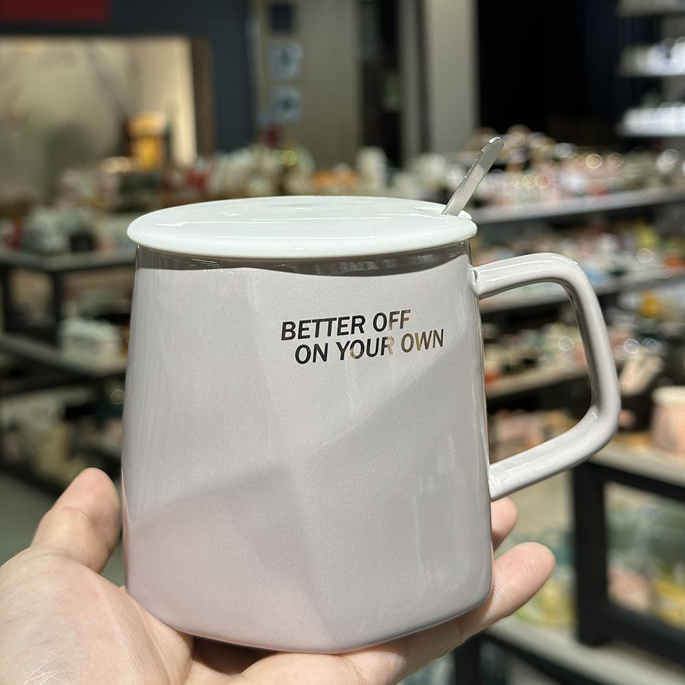 Высококачественная легкая роскошь Простая геометрическая мальчиковая кружка с крышкой и ложкой Керамическая чашка для воды Офисная чашка для кофе Бытовое использование 301-400ml