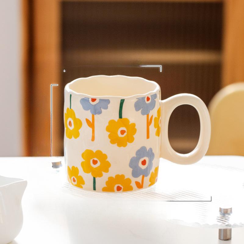 Высококачественная милая керамическая кружка с цветком, домашняя чашка для завтрака, большая емкость, чашка для воды, офисная чашка, кофейная чашка 440ml