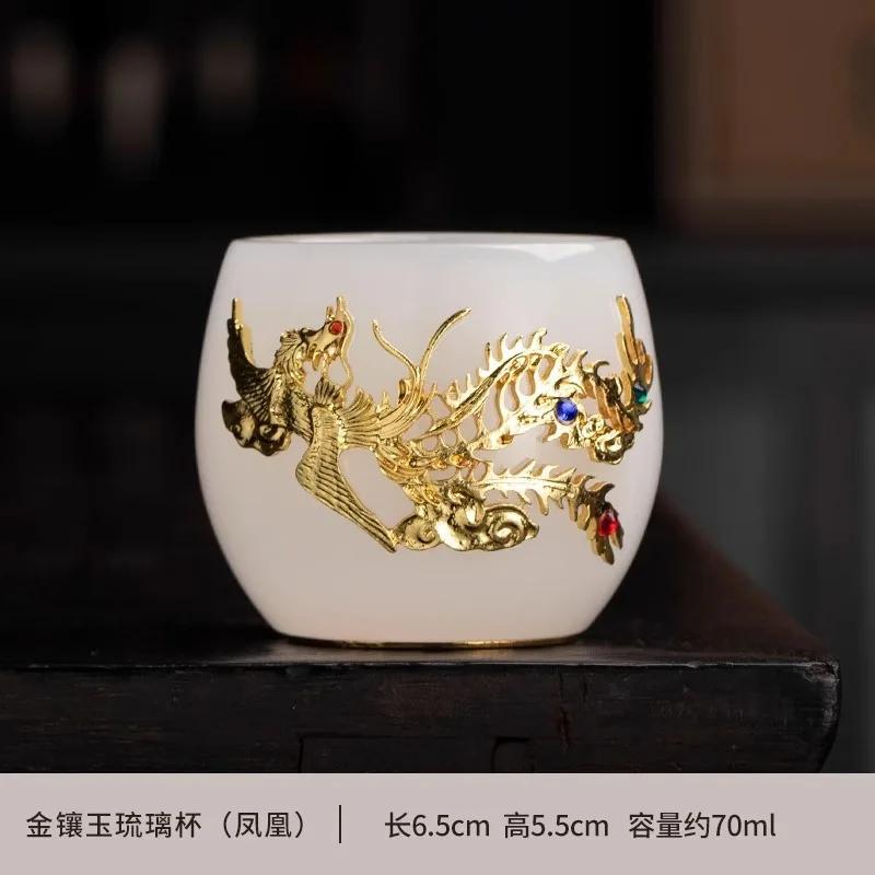 Высококачественная роскошная инкрустированная золотом нефритовая стеклянная чашка для хранения чая домашняя чайная чашка в стиле кунг-фу подарочная коробка 70ML