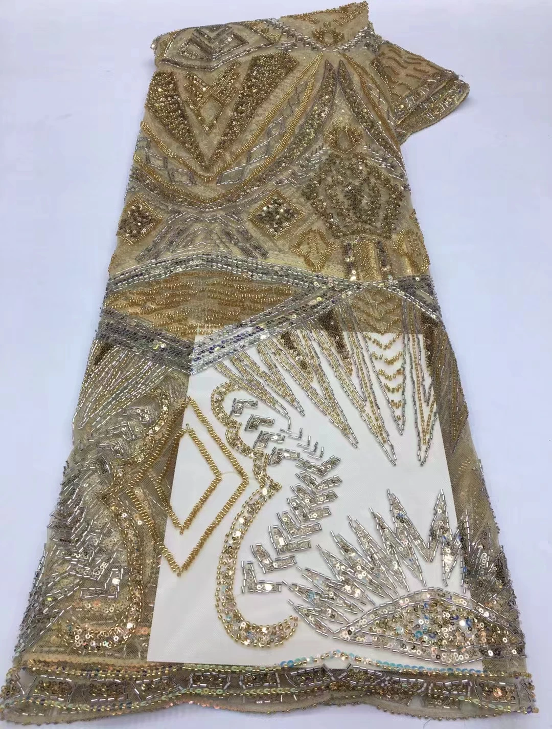 3D Beads Lace Fabric High Quality Mesh Embroidery Applique Tulle Nigerian Party Lace Fabrics For Bridal Wedding Dress JH-525