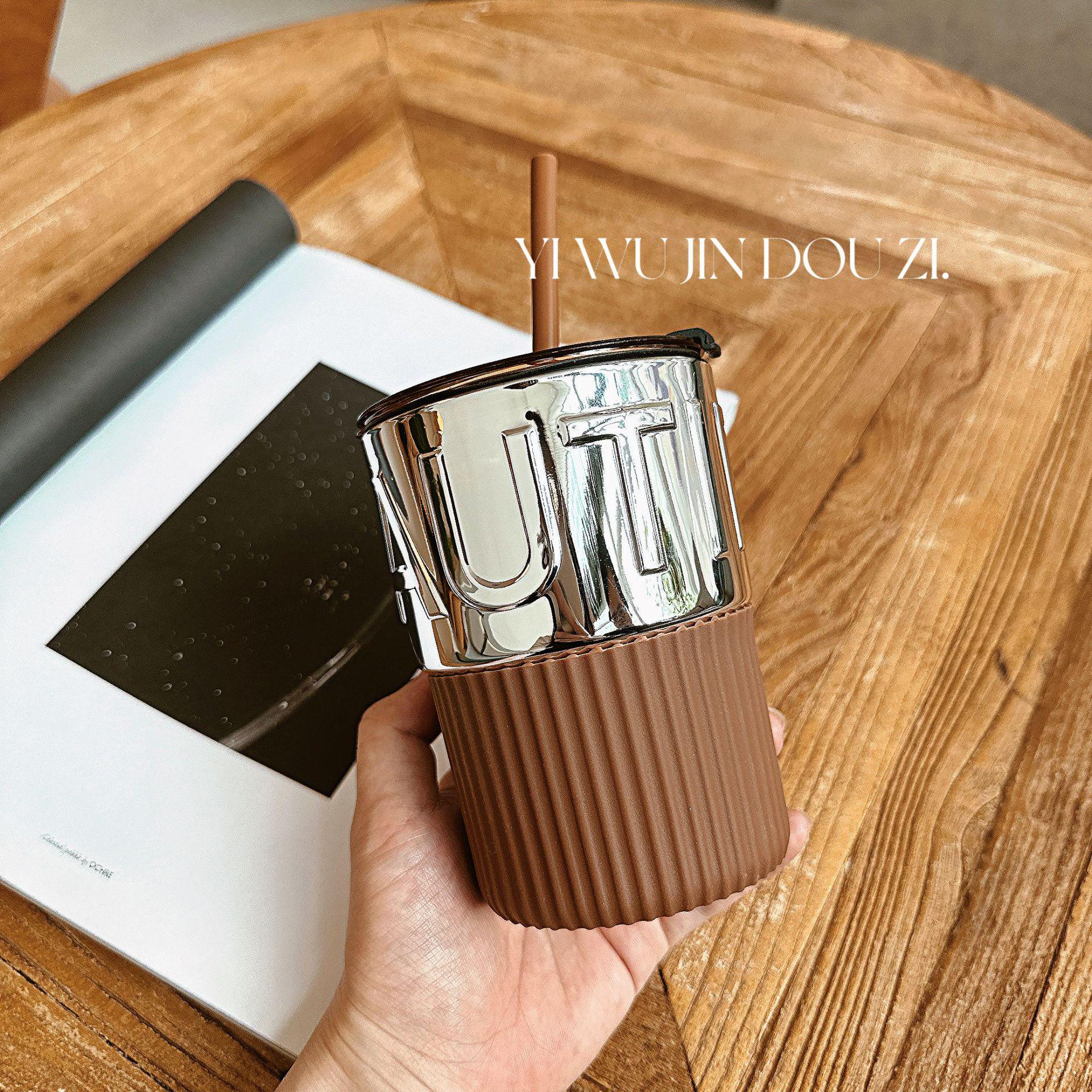 Высококачественная стеклянная кофейная чашка в американском стиле с соломинкой и крышкой - Защита от ожогов, Идеально подходит для офисного использования 450ML