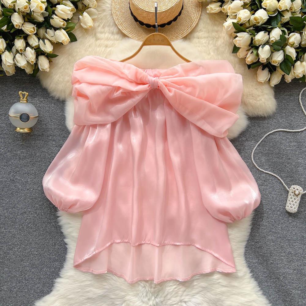 Высококачественная уникальная маленькая рубашка с пышными рукавами, маленькая темпераментная рубашка на одно плечо, топ для женщин
