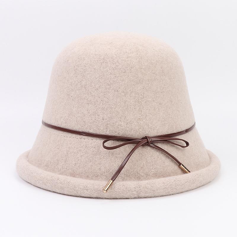 Высококачественная шерстяная шляпа-чаша, осенне-зимняя новая женская керлинговая шляпа с бантом, завязанная веревкой, рыбацкая шляпа, модная теплая шляпа на открытом воздухе, дизайнерская шляпа One Size бежевый
