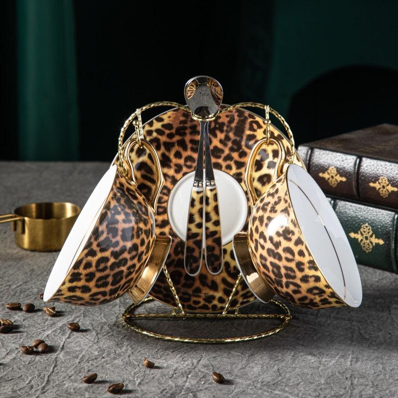 Высококлассная кофейная чашка и блюдце из костяного фарфора с леопардовым принтом, набор чашек для послеобеденного чая, нишевая роскошь, керамическая подарочная коробка Leopard print