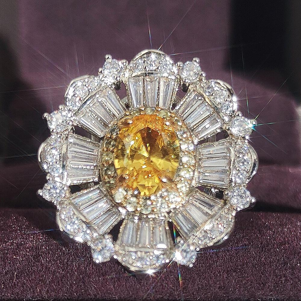Высококлассное кольцо-цветок с желтым бриллиантом и уникальным дизайном (Модель r6283) Adjustable Opening жёлтый