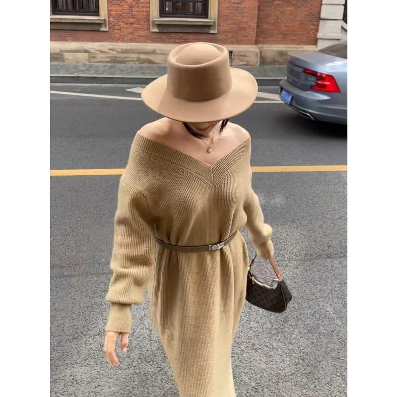 Высококлассное легкое роскошное платье для светской львицы, сексуальное, модное, в стиле королевской сестры, повседневное, ретро, длинный свитер, женское, осенне-зимнее XL хаки