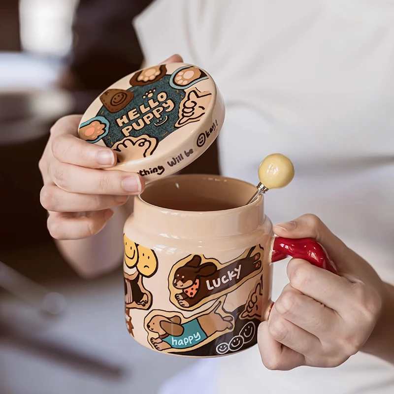 Высокоцветная кружка для щенка, дизайнерская офисная ниша, чашка для воды, домашняя чашка для завтрака для девочек, овсяная чашка с крышкой и ложкой