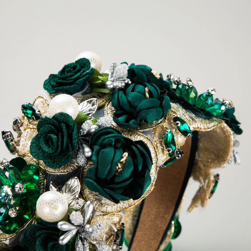 Вышивка Вышитые цветы Жемчужные повязки на голову Алмазная повязка для волос Модная повязка для волос со стразами Женская