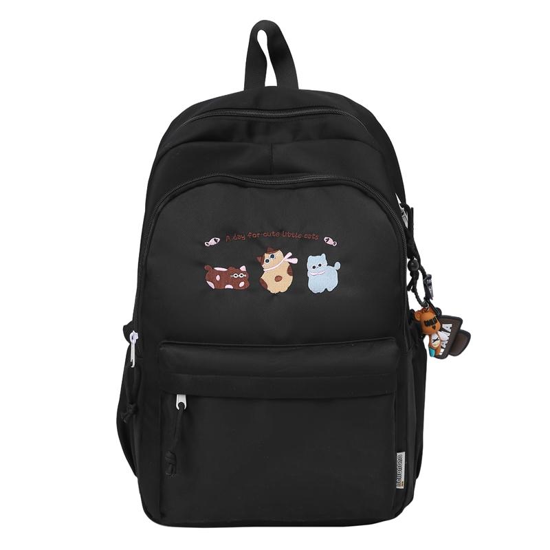 Вышивка Животных Кампус Студенческий Школьный Рюкзак Женский Легкий Рюкзак Большой Вместимости чёрный