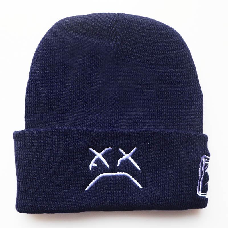 Вышитая вязаная шапка с капюшоном для женщин, повседневная теплая нейтральная шапка Adjustable темно-синий