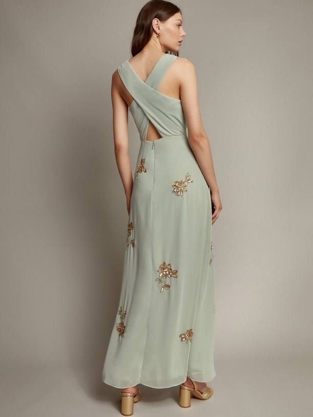 Это макси-платье от Monsoon, выполненное в облегающем силуэте, украшено вырезом с капюшоном и цветочной вышивкой для дополнительной привлекательности.