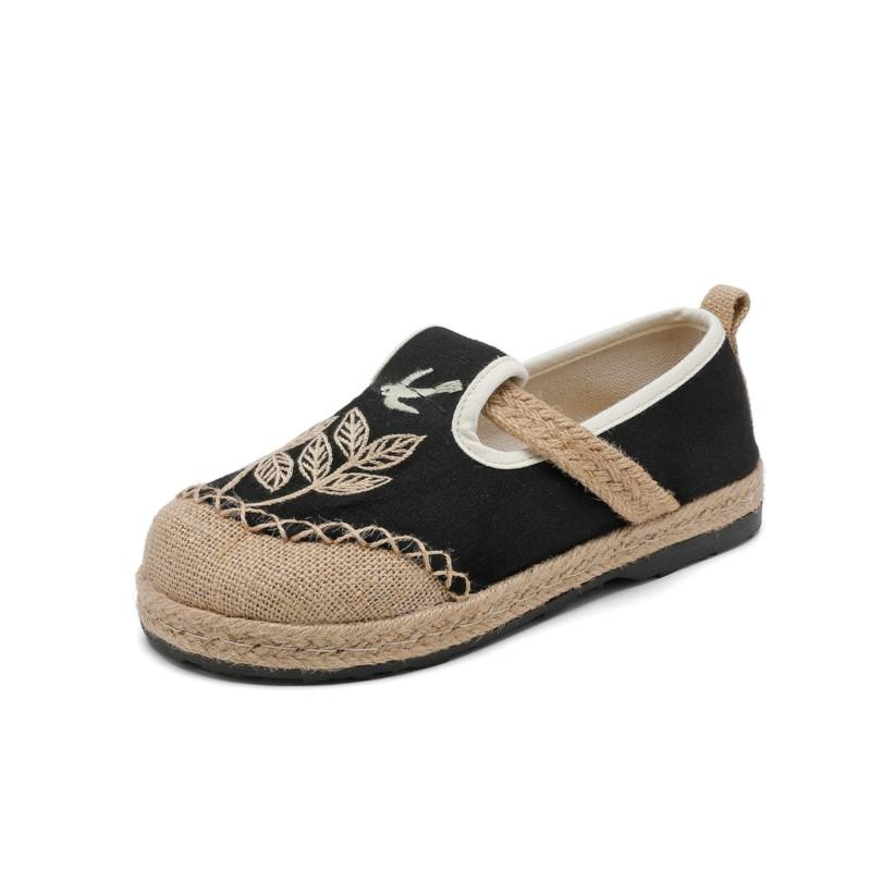 Вышитые туфли из ткани в этническом стиле Johnature, хлопчатобумажные, льняные, мягкие, дышащие, тканые, женские туфли на плоской подошве 40 чёрный