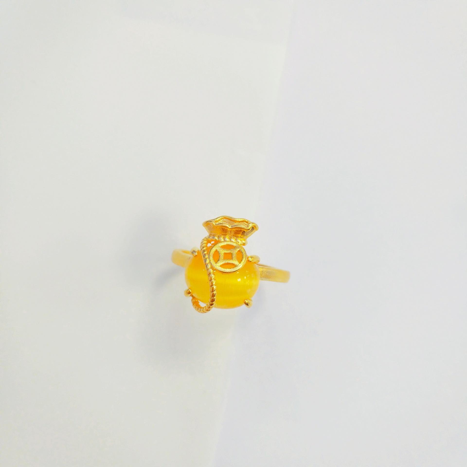 Вьетнамская монета Уникальное кольцо-мешочек Очаровательное кольцо из латуни с золотым покрытием с геометрической формой Yellow Ring