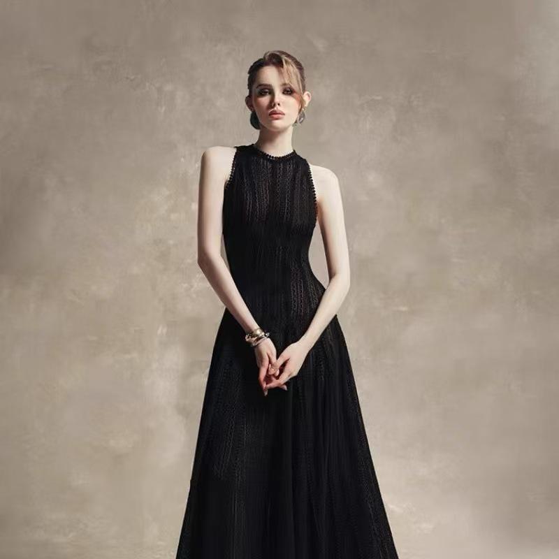 Вьетнамское винтажное кружевное вечернее платье с полной юбкой Medium чёрный