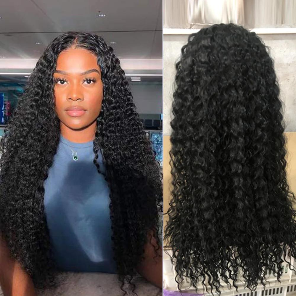 Вьющиеся кружевные парики Длинные волосы Синтетический черный парик шнурка Глубокая часть бордового парика Высокая температура для черной женщины