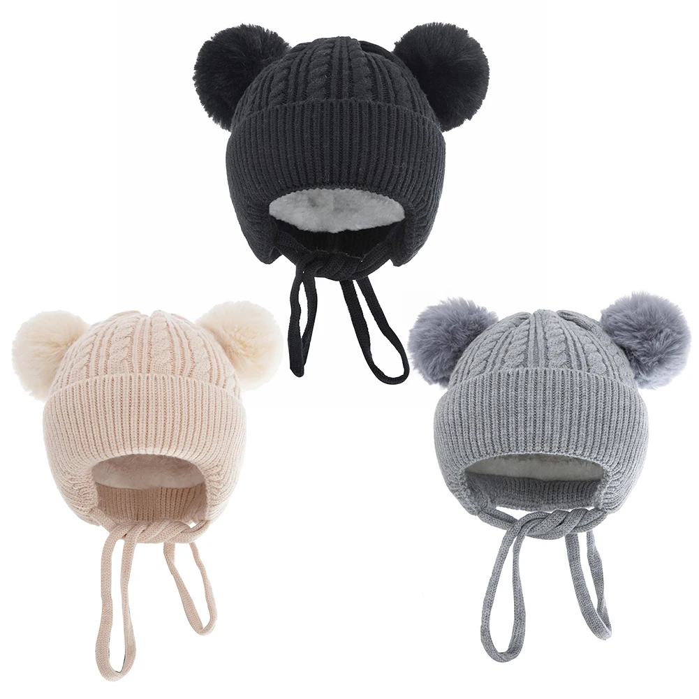 Вязаная Детская Шапка-бини, шапка для маленьких мальчиков и девочек, теплая детская осенне-зимняя шапка для девочек, детская тёплая Шапка-би...