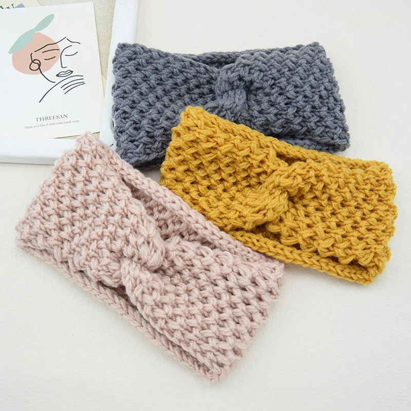 Вязаная крючком повязка на голову осень-зима искусственная шерстяная эластичная повязка для волос однотонная универсальная широкая Женск...