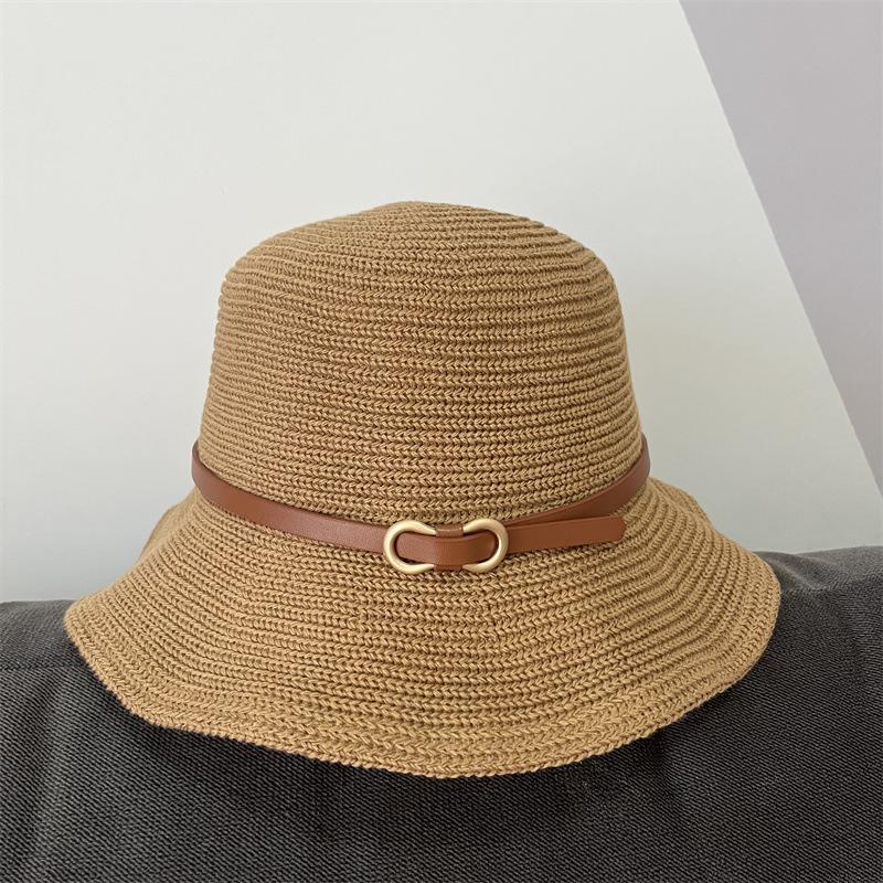 Вязаная панама с волнистым краем и поясом женская осенне-зимняя складная ретро универсальная повседневная солнцезащитная шляпа-ведро Adult (56-58cm) верблюд