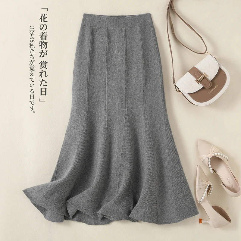 Вязаная плиссированная длинная юбка женская осень-зима сексуальная облегающая эластичная высокая талия рабочая вечеринка юбки-русалка-труба миди