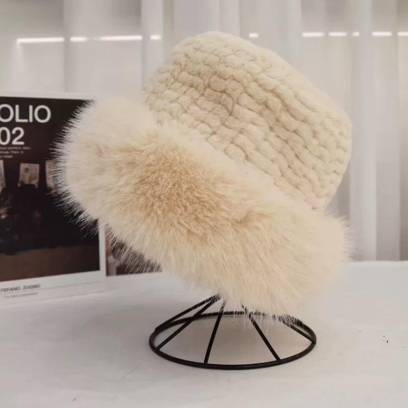 Вязаная пушистая меховая шапка женская зимняя шапка ручной работы теплая шапка бини