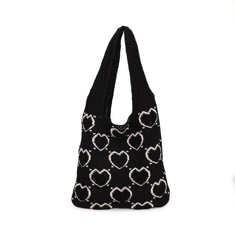 Вязаная сумка Ретро тканая сумка Сумка на плечо Модная милая ленивая стильная сумка-тоут большой емкости Все повседневное One Size чёрный