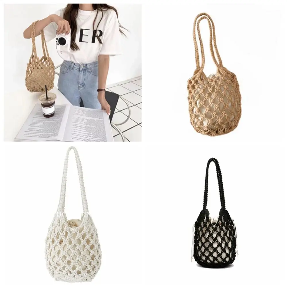 Вязаная сумка-ведро в корейском стиле, нишевая дизайнерская однотонная сетчатая веревочная сумка на плечо, маленькая сумка для телефона, дорожная сумка