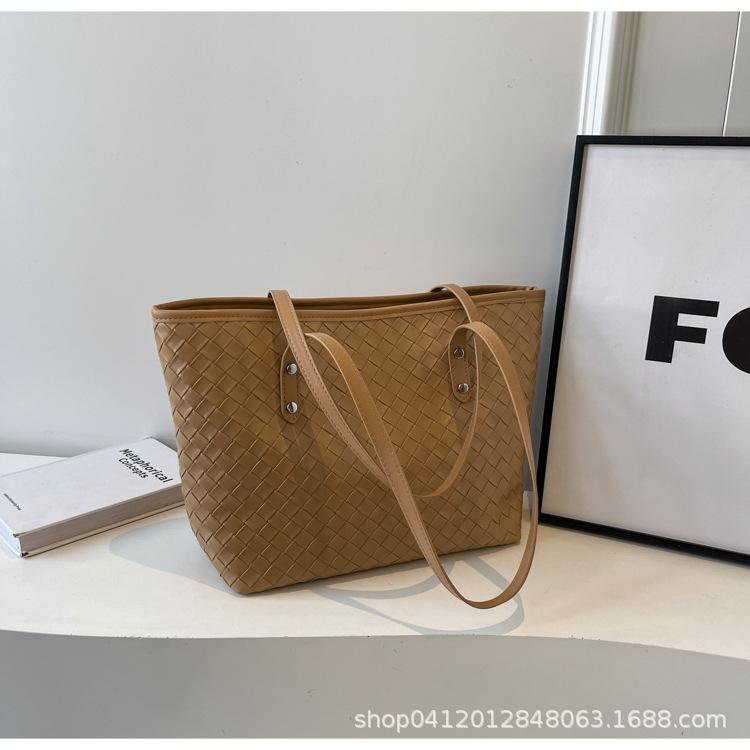 Вязаная сумка-тоут большой вместимости женская 2025 новая модная взрывная сумка через плечо простая текстура рабочая сумка для поездок