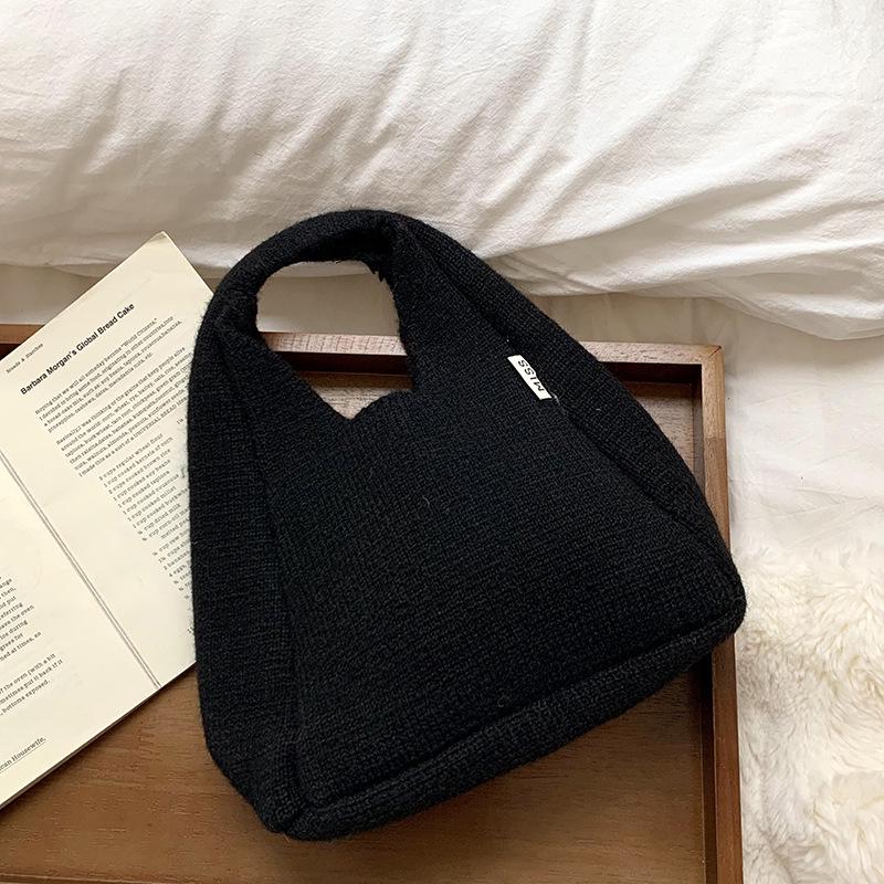 Вязаная сумка через плечо большой вместимости в корейском стиле - издание Осень/Зима 2025 чёрный