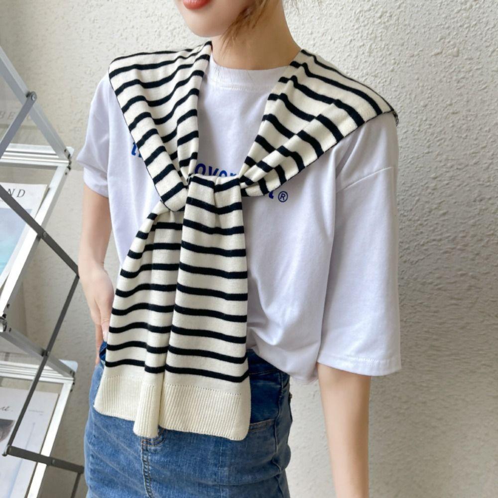 Вязаная шаль ярких цветов в полоску с завязанным искусственным воротником, универсальная женская блузка с защитой шеи