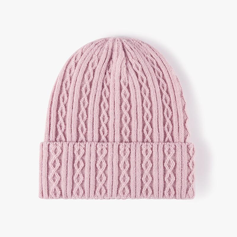 Вязаная шапка Шапка-бини Тюбетейка Лыжная шапка с манжетами без полей Шапка-бини в стиле ретро розовый