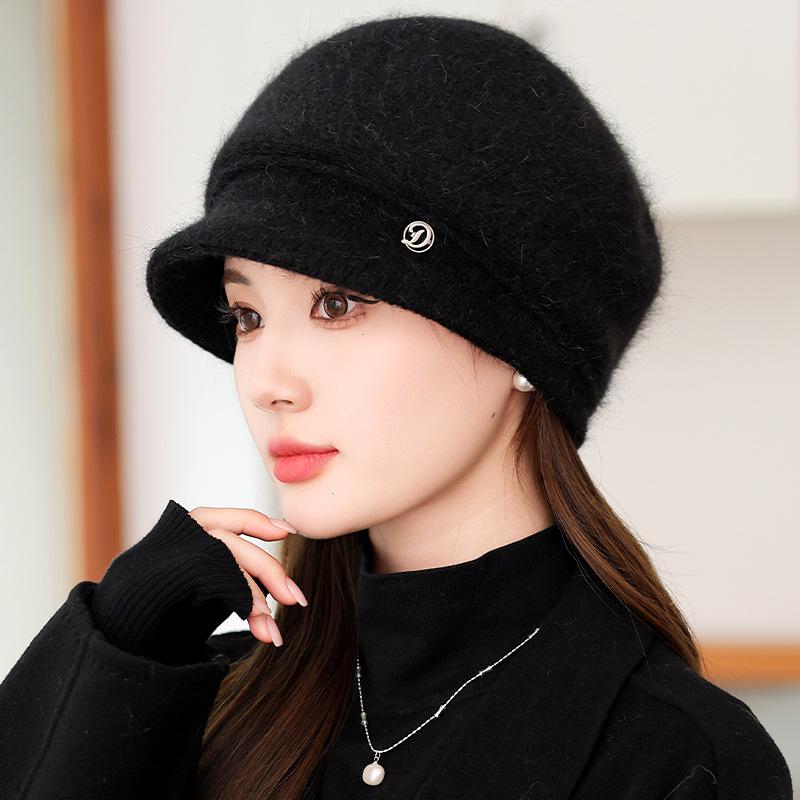 Вязаная шапка для женщин, осенне-зимняя теплая шапка из кроличьей шерсти в западном стиле, короткая вязаная шапка с утиным язычком, шапка для пожилых мам среднего возраста one size чёрный