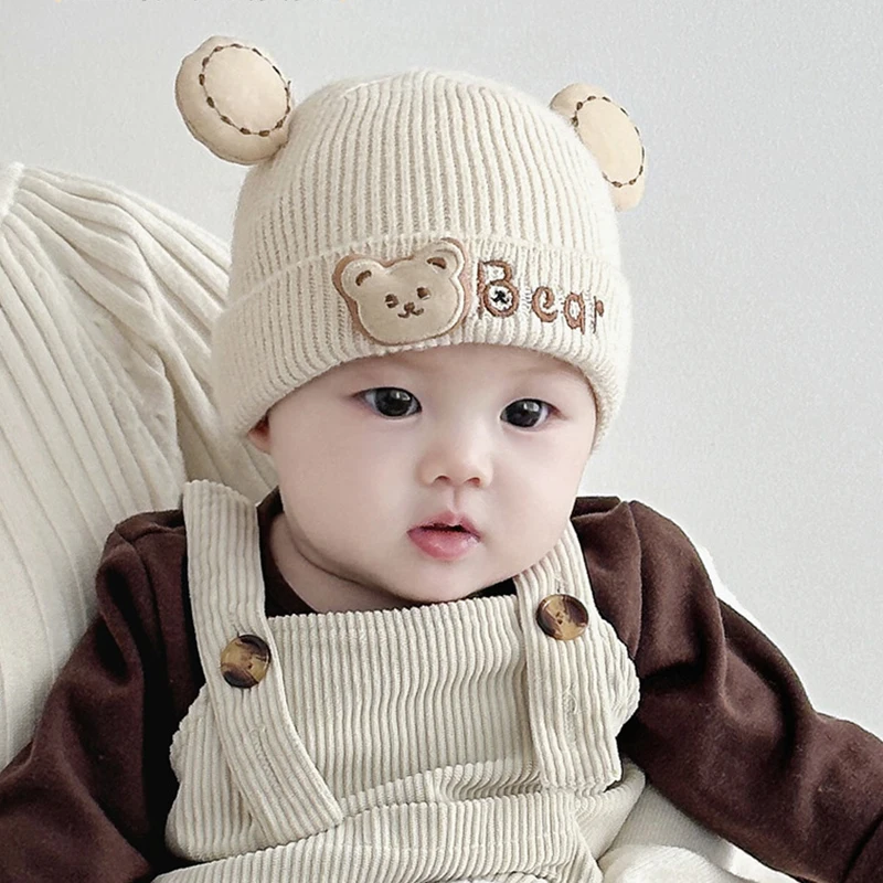 Вязаная шапка для новорожденных от 0 до 8 месяцев, зимние теплые детские шапочки, защита ушей, пуловер для новорожденных, шапка для мальчиков и девочек, шерстяной вязаный крючком чепчик