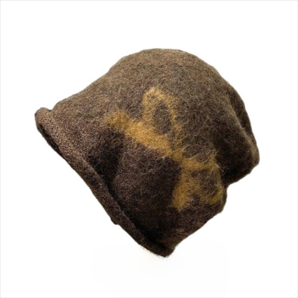Вязаная шапка крупной вязки, шапка-бини, большой размер головы, шапка с бантом, стильная объемная шапка, для улицы кофейный