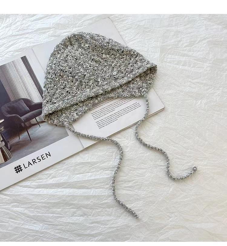 Вязаная шапка ручной работы, большая голова, большое лицо, универсальный головной убор, женская осенне-зимняя, маленькая холодная шапка, шерстяная шапка на шнуровке adult average size светло-серый