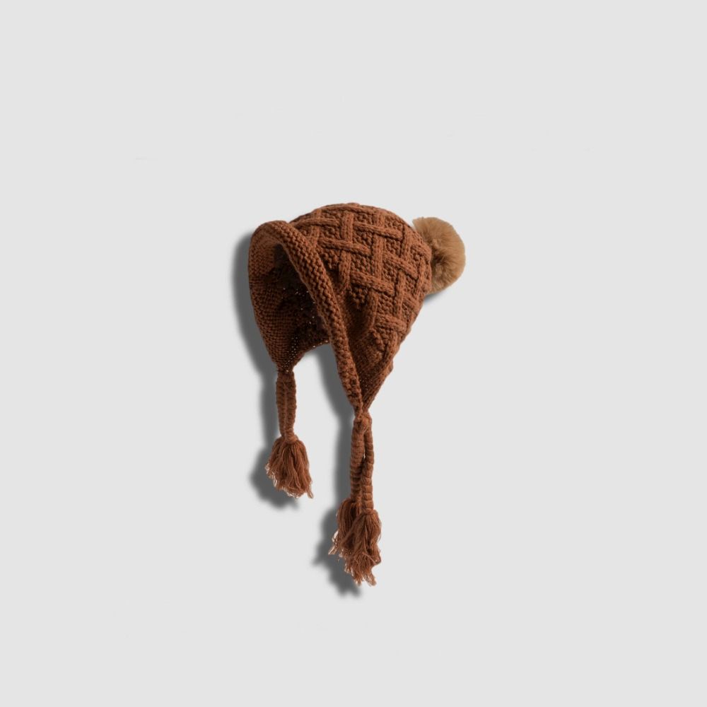 Вязаная шапка с кисточкой и косичками, осенне-зимняя шапка для защиты ушей, модная шапка принцессы для детей кофейный